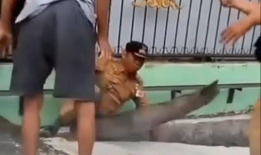 Setelah insiden itu, Fadli berusaha naik kembali dari parit dengan pakaian dinas yang sudah basah dan kotor oleh lumpur.