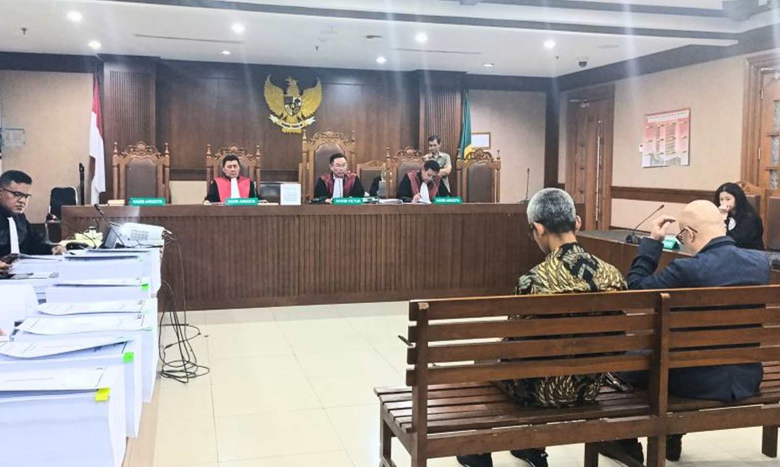 TUNTUTAN: Dua terdakwa kasus dugaan investasi fiktif di PT Taspen (Persero) pada tahun 2019, Antonius Nicholas Stephanus Kosasih dan Ekiawan Heri Primaryanto, mendengarkan pembacaan surat tuntutan di Pengadilan Tipikor pada PN Jakarta Pusat.-ANTARA FOTO-Jambi Independent