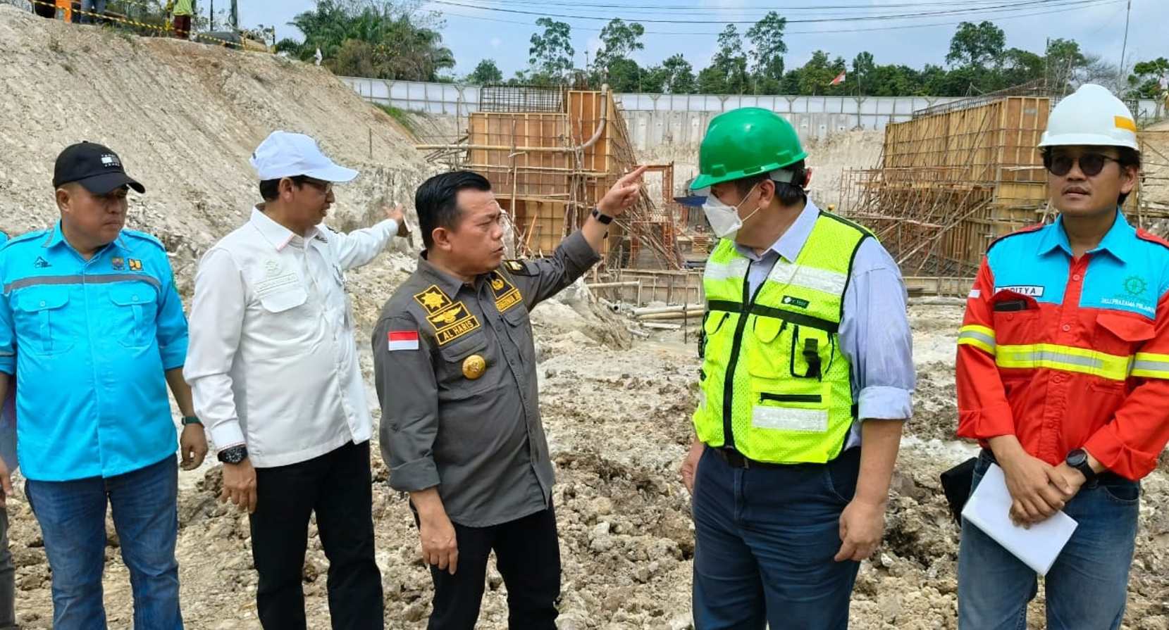 PENINJAUAN: Gubernur Jambi, Al Haris didampingi Johansyah saat meninjau underpass jalan khusus batubara di Desa Tenam, Kabupaten Batang Hari. -Ist/Jambi Independent-Jambi Independent