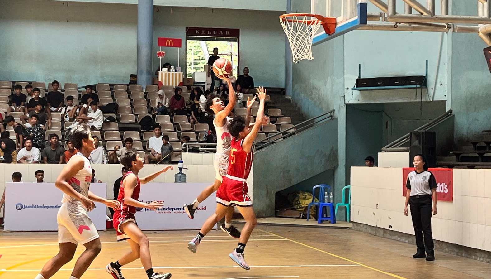 JAMBI – Tim basket putra SMAN 5 Kota Jambi tampil dominan saat menghadapi SMAN 2B Kota Jambi dalam lanjutan pertandingan hari ketiga Gubernur Cup Jambi 2025, Selasa (23/9), di GOR Kotabaru.