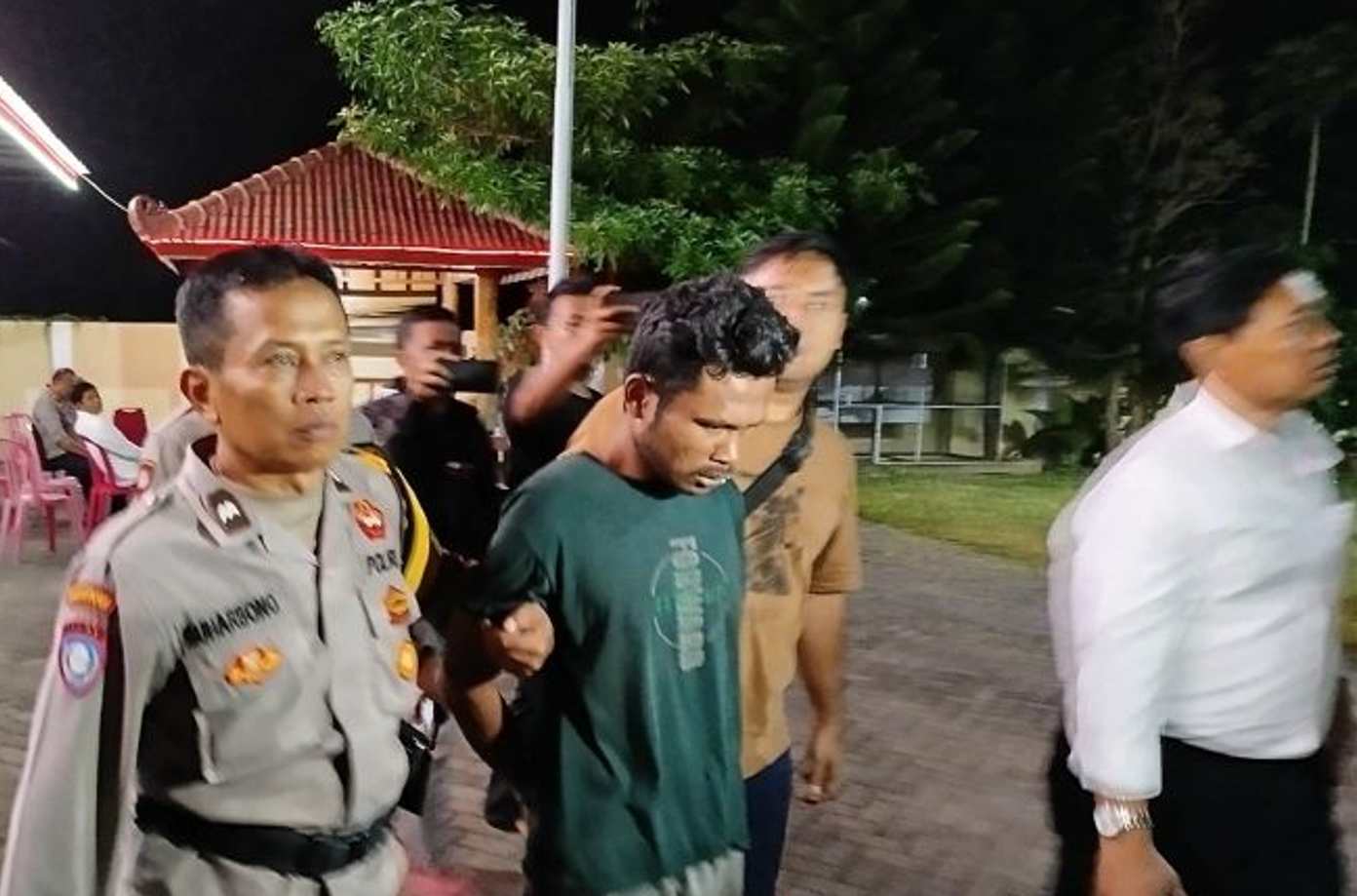 Tersangka Sukar saat diamankan oleh polisi sesuai membunuh kedua orang tuanya di Dukuh Sedandang, Desa Pomahan, Kecamatan Pulung, Ponorogo.-Ist/Jambi Independent-Jambi Independent