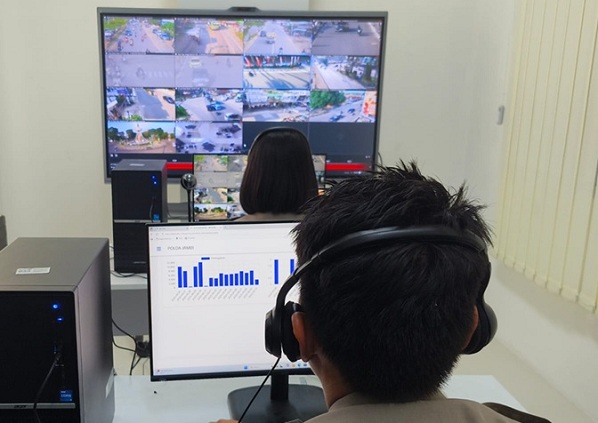 Operator Ditlantas Polda Jambi saat mengawasi CCTV di Kota Jambi.-ist/jambi independent-