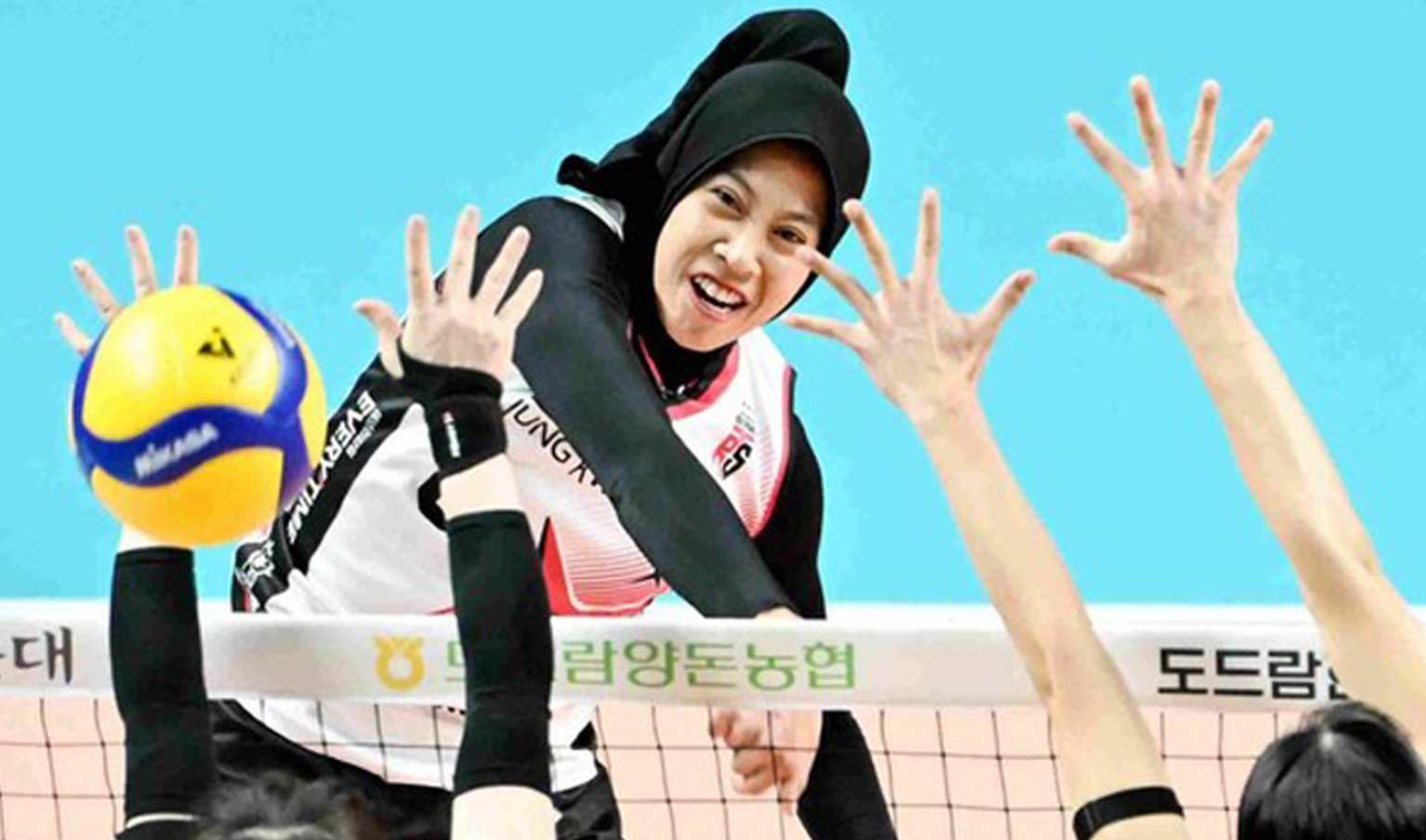 Megawati Hangestri Pertiwi saat melepaskan smes di Liga Voli Korea. Sementara Kapten tim nasional voli putri Indonesia, dipastikan akan memperkuat tim Bank Jatim dalam babak final four Livoli Divisi Utama 2025.-Ist/Jambi Independent-Jambi Independent