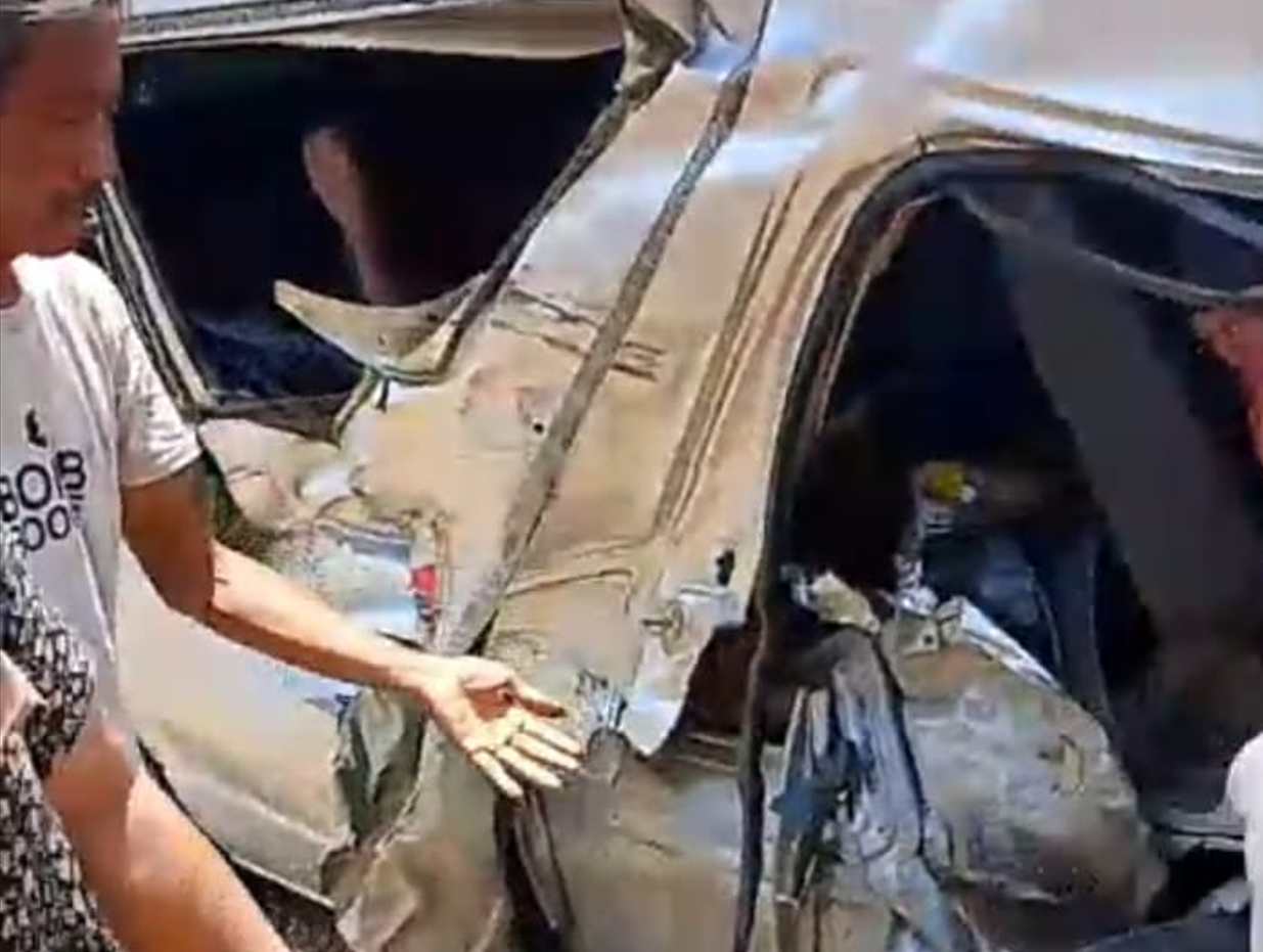 Video yang beredar memperlihatkan kondisi kedua kendaraan yang rusak parah di bagian depan.