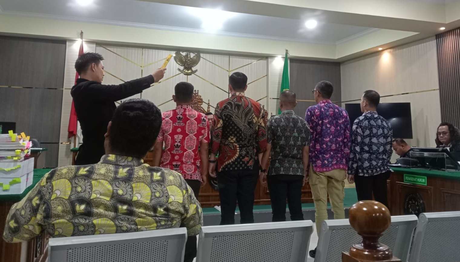 DISUMPAH: Enam orang saksi disumpah sebelum memberikan keterangan pada persidangan kasus korupsi pembangunan Pasar Tanjung Bungur.-SURYA ELVIZA/JAMBI INDEPENDENT-Jambi Independent