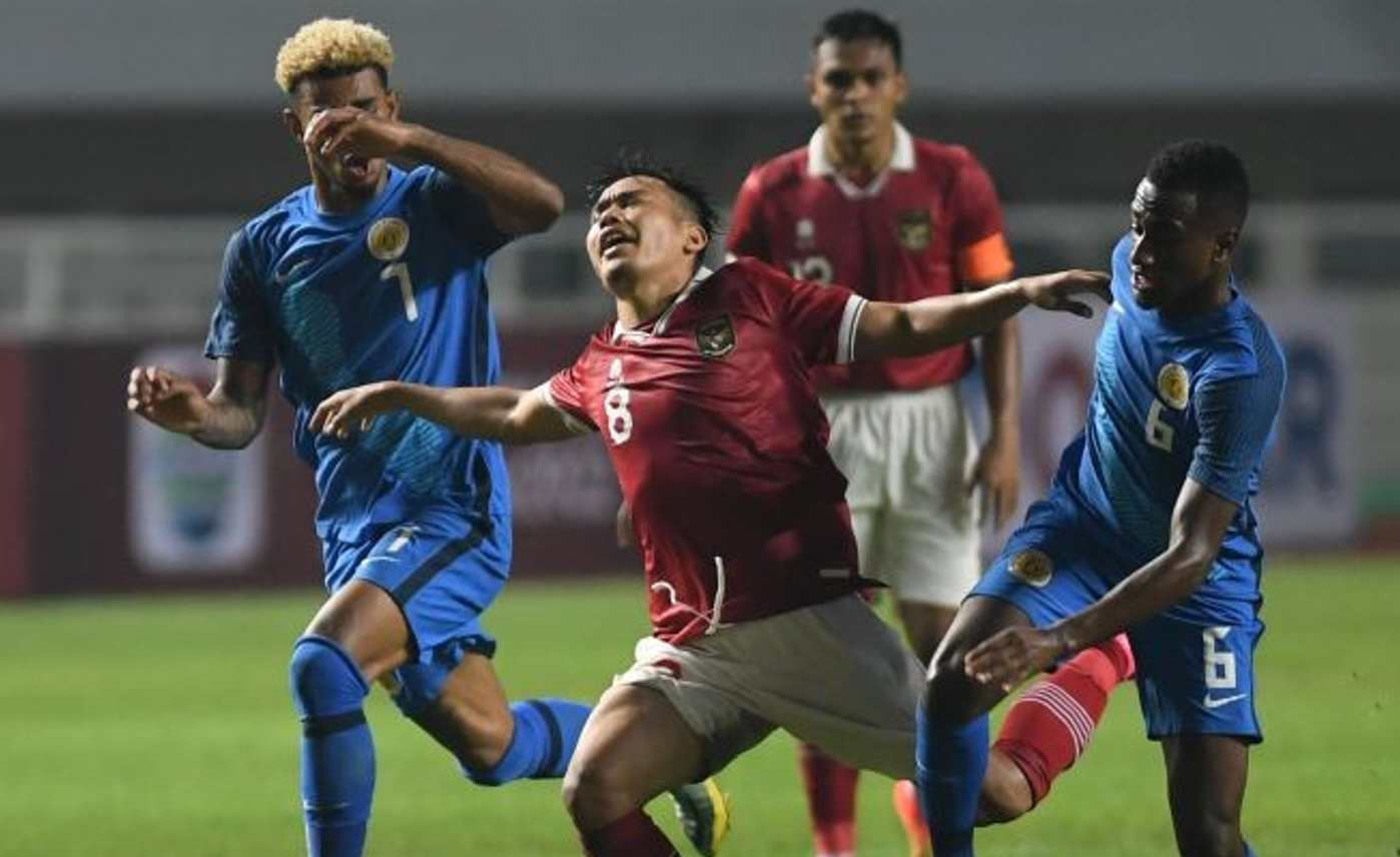 arsip foto - Pesepak bola Tim Nasional Indonesia Witan Sulaeman (tengah) terjatuh usai berebut bola dengan pesepak bola Tim Nasional Curacao Kevin Felida (kanan) dalam pertandingan 'FIFA Match Day' di Stadion Pakansari, Cibinong, Kabupaten Bogor, Jawa Bar-ANTARA FOTO/ADITYA PRADANA PUTRA-Jambi Independent