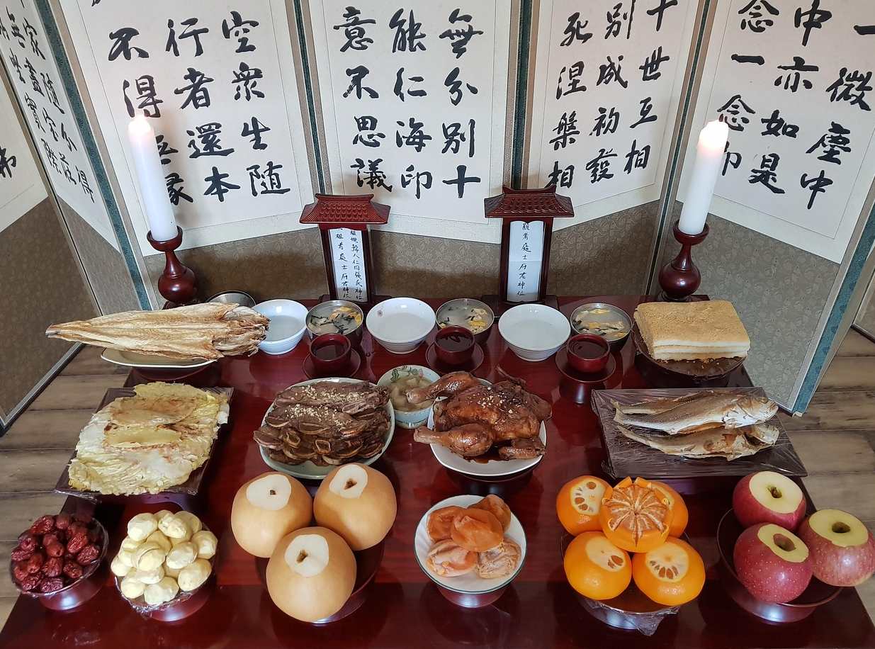 Charye merupakan ritual penghormatan kepada leluhur yang dilakukan pada pagi hari. Keluarga akan menyiapkan meja persembahan yang berisi berbagai hidangan, minuman tradisional, dan hasil panen.