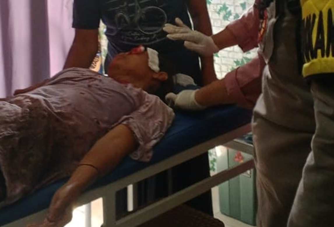 Sutini, saat mendapat pertolong medis usai diserang beruang saat menyadap karet di kebun. -Ist/Jambi Independent-Jambi Independent