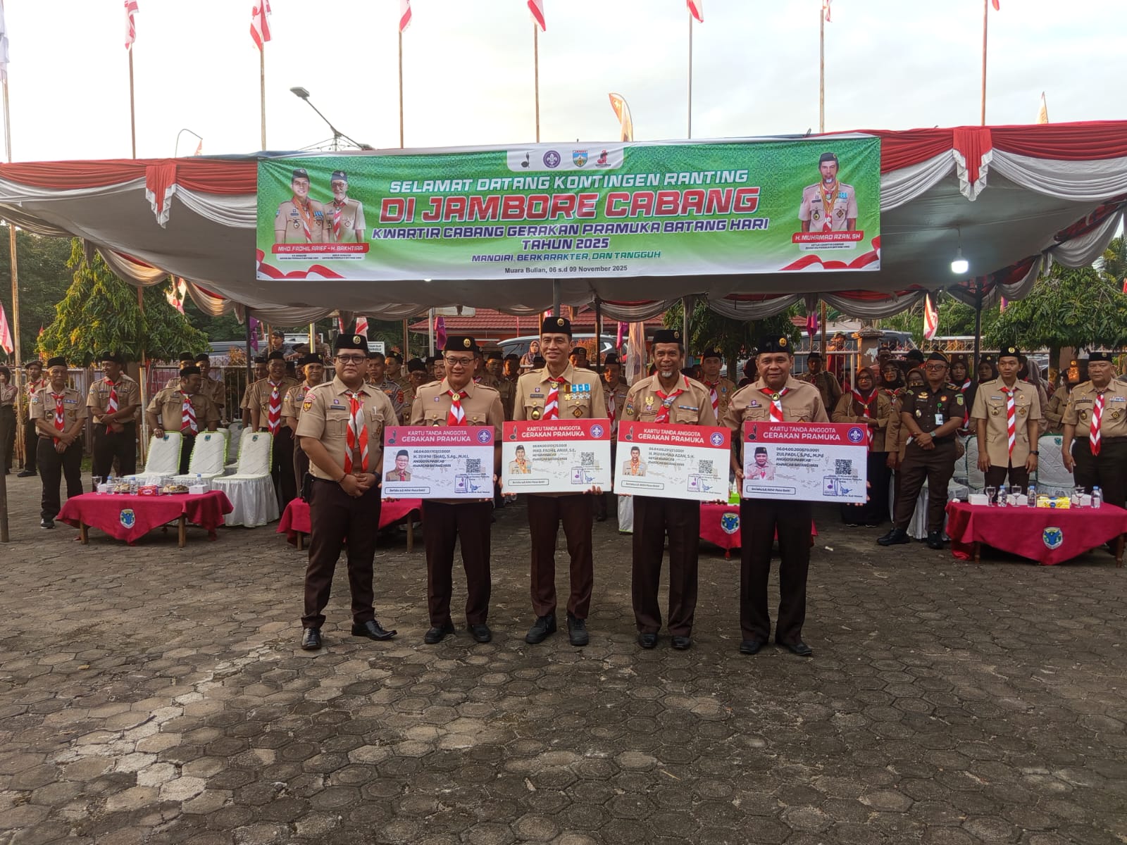 BATANG HARI,JAMBIKORAN.COM – Bupati Batanghari, Mhd. Fadhil Arief, secara resmi membuka Jambore Pramuka Cabang Batanghari Tahun 2025 yang digelar di Bumi Perkemahan Pusdiklatnas Tapa Melenggang (Candika Batanghari), Jalan Pramuka, Kelurahan Muara Bulian, Kecamatan Muara Bulian, Kabupaten Batanghari, pada Kamis 6 November 2025.