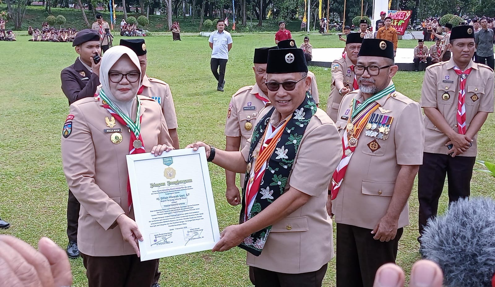 "Kita tau, Indonesia di tahun 2045 itu akan melahirkan Generasi Emas. Generasi ini lah yang nantinya akan memimpin negara kita kedepannya. Oleh karena itu kita membina generasi muda melalui Pramuka agar menjadi pribadi yang lebih baik, tangguh, unggul, miliki integritas serta tanggungjawab untuk bangsa dan negara ini, memiliki wawasan yang luas serta menjadi manusia Pancasila dan cinta kepada tanah air," ucapnya.