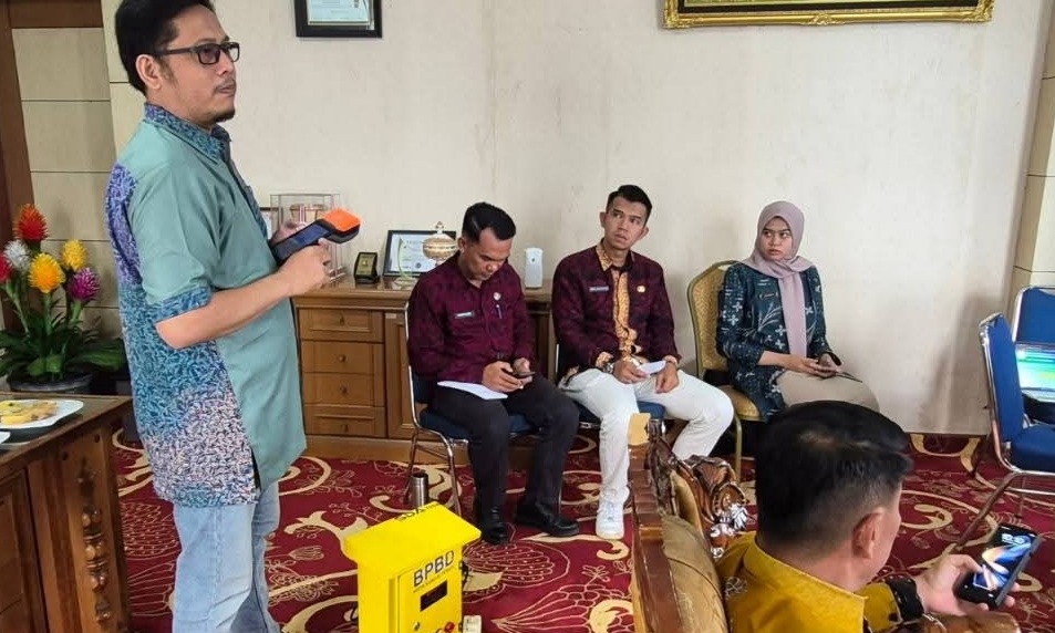 SUNGAIPENUH - Pemerintah Kota Sungai Penuh menerima bantuan Software Aplikasi Early Warning System (EWS) sebagai upaya peningkatan kesiapsiagaan dan mitigasi bencana di wilayah Kota Sungai Penuh, bertempat di ruang Kerja Sekda Alpian.
