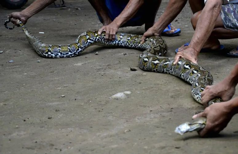 Bikin Geger! Ular Piton Raksasa Masuk Usaha Dekorasi, Damkar Sungai Bahar Turun Tangan