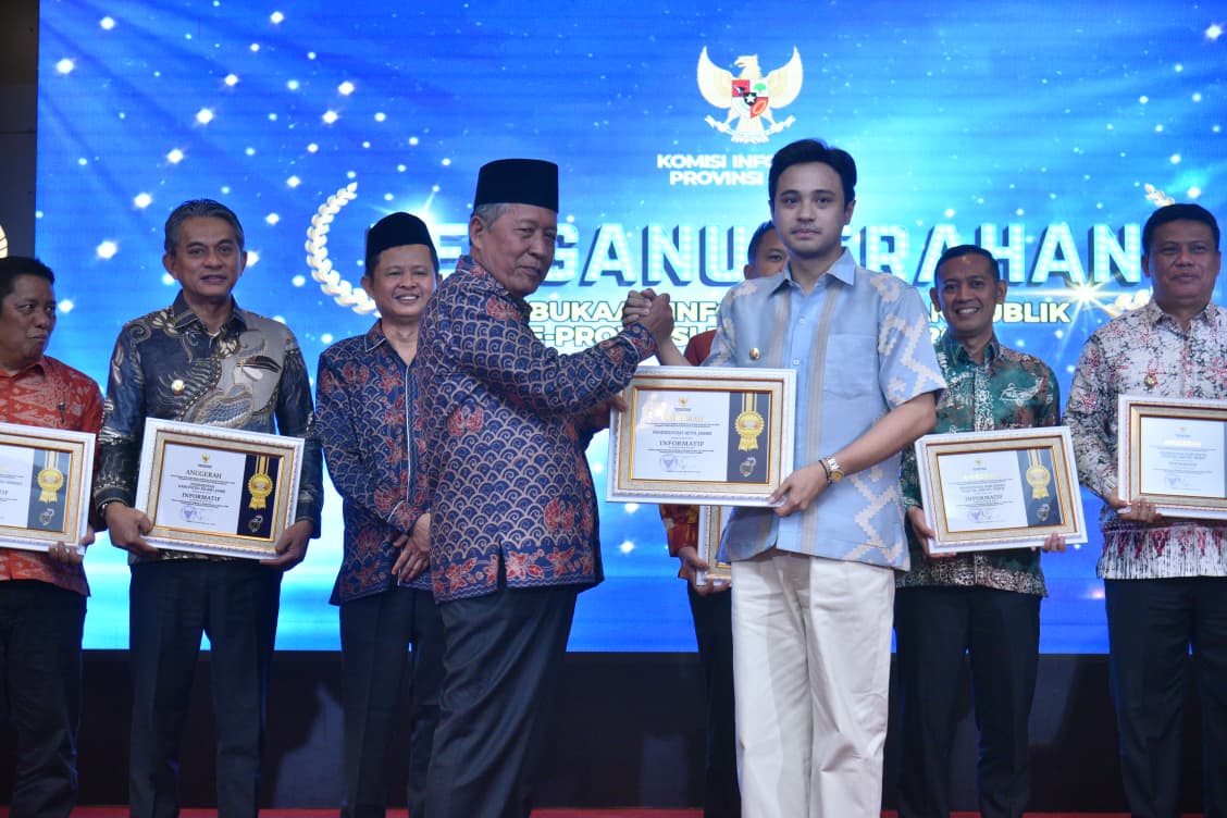 Penghargaan Anugerah Keterbukaan Informasi Badan Publik Provinsi Jambi Tahun 2025 ini diterima langsung oleh Wakil Wali Kota Jambi, Diza Hazra Aljosha, S.E., M.A, dari Wakil Gubernur Provinsi Jambi, Drs. H. Abdullah Sani, M.Pd.I, dalam acara selebrasi yang digelar di Auditorium Rumah Dinas Gubernur Jambi, Rabu malam (17/12/2025).