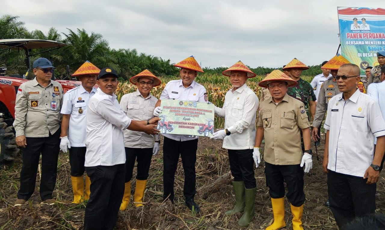 Sebelum menghadiri sidang paripurna, Menko Pangan diajak Bupati Syukur blusukan ke kebun jagung di kawasan Mentawak untuk panen raya bersama warga.