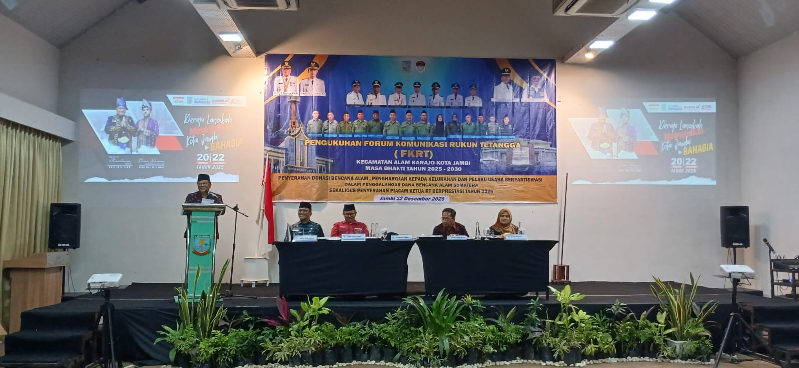 JAMBI, JAMBIKORAN.COM – Pemerintah Kota Jambi mengukuhkan Forum Komunikasi Rukun Tetangga (FKRT) Kecamatan Alam Barajo masa bakti 2025–2030. Pengukuhan yang berlangsung di wilayah Kecamatan Alam Barajo itu dihadiri langsung Wali Kota Jambi Maulana, Senin (22/12/2025).